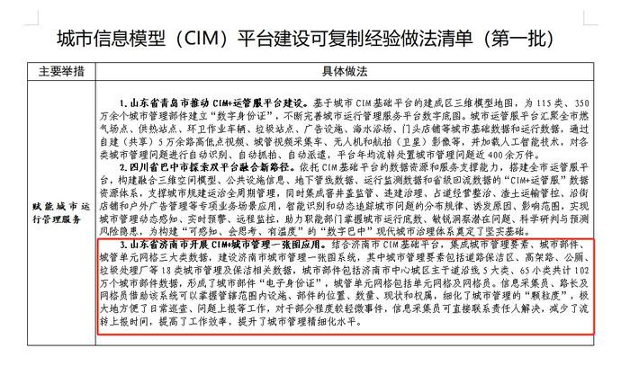 近日,住房城乡建设部正式印发《城市信息模型(CIM)平台建设可复制经验做法清单(第一批)》,旨在推广各地在推进城市数字底座建设中的先进经验。山东省济南市凭借其创新的“CIM+城市管理一张图”应用脱颖而出,成为全国首批获得官方推介的典范案例。